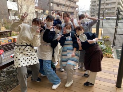 外での調理は少し寒かったです🥶