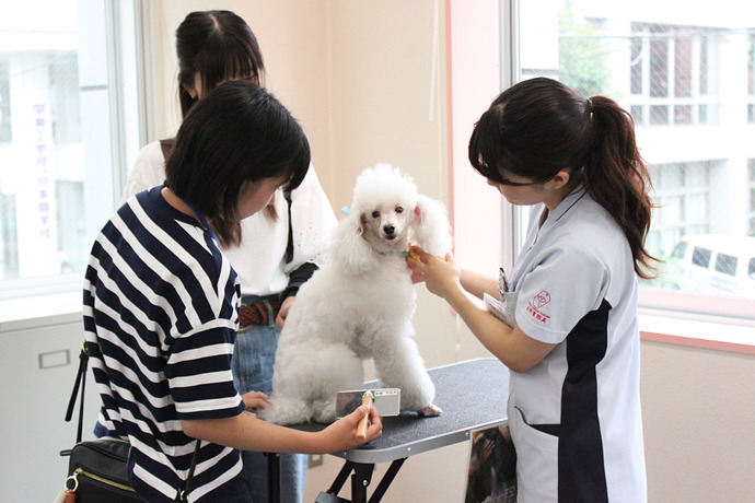 ●ふれあい体験 ※本校で飼育しているわんちゃんでトリマー、動物看護師、トレーナーなどの体験ができます。