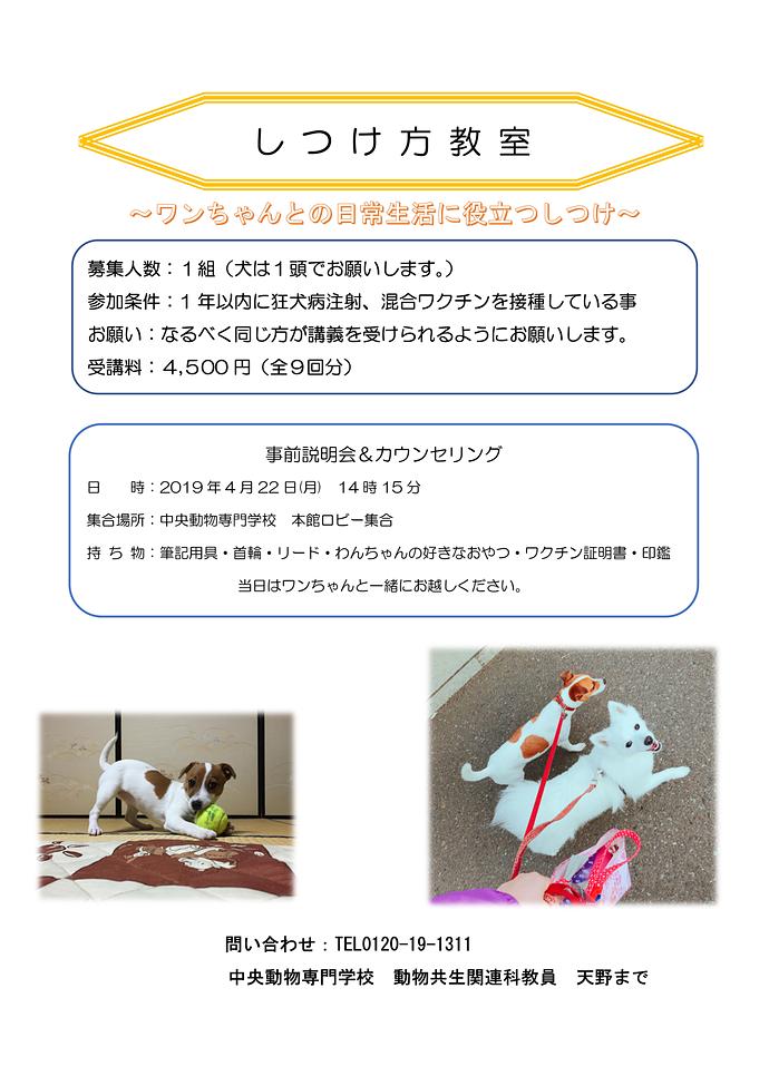 2019年度「しつけ方教室」を開講します!